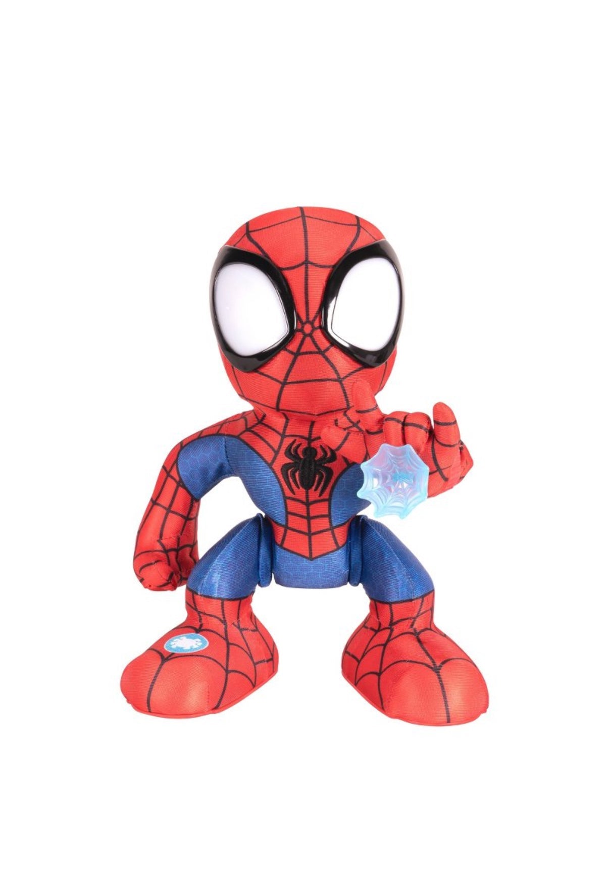 Custom switch adapted Spidey plush. Customer provided toy for adaption, two switch ports added.